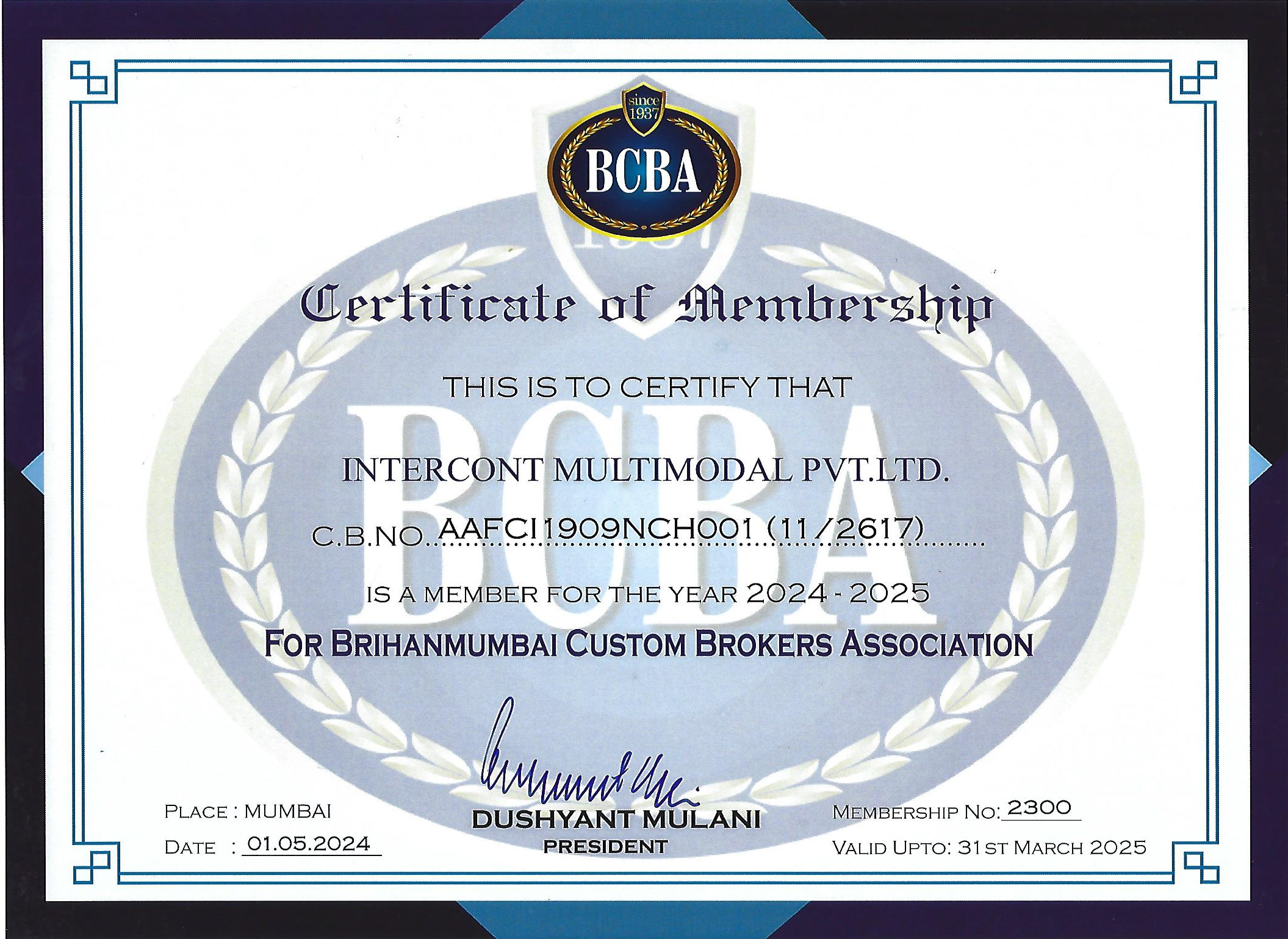 Certificate of Membership